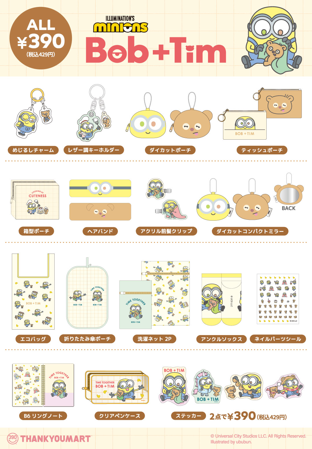 安心好伙伴小黄人“BOB+TIM”的限定商品隆重登场!以与小黄人一起度过的日常生活为主题,推出让您感到轻松愉快的商品系列♪以象牙白、YELLO等浅色调为主,共23款!仅THANK YOU MART有售◎请务必前往您附近的THANK YOU MART门店查看!【店内销售】■销售开始日期:2025年10月10日星期五,各门店及商品到货即刻售罄。■商品详情:https://thankyoumart.jp/blogs/news/minions-bob-tim ※库存情况可能因到店时间而异。敬请谅解。