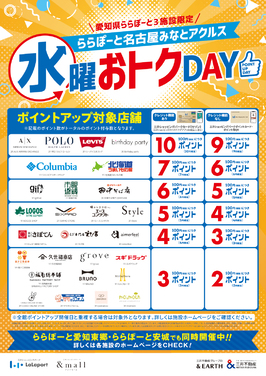<每周三举办!周三优惠DAY>对象店铺限定三井购物公园积分更新日