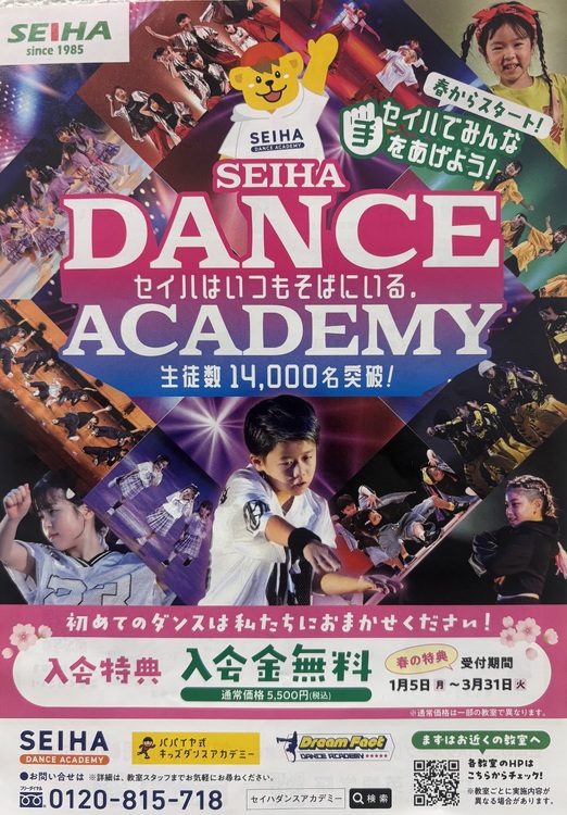 ★这是一所将于2023年6月开学的新舞蹈学校★ Seiha 舞蹈学院面向 2 岁以上的儿童开放。终于在LaLaport名古屋港AQULS Op! ! !欢迎初学者☆“我经常在家跳舞!” “我爱音乐!” “我喜欢活动身体!”如果您有一点点兴趣,请随时咨询。