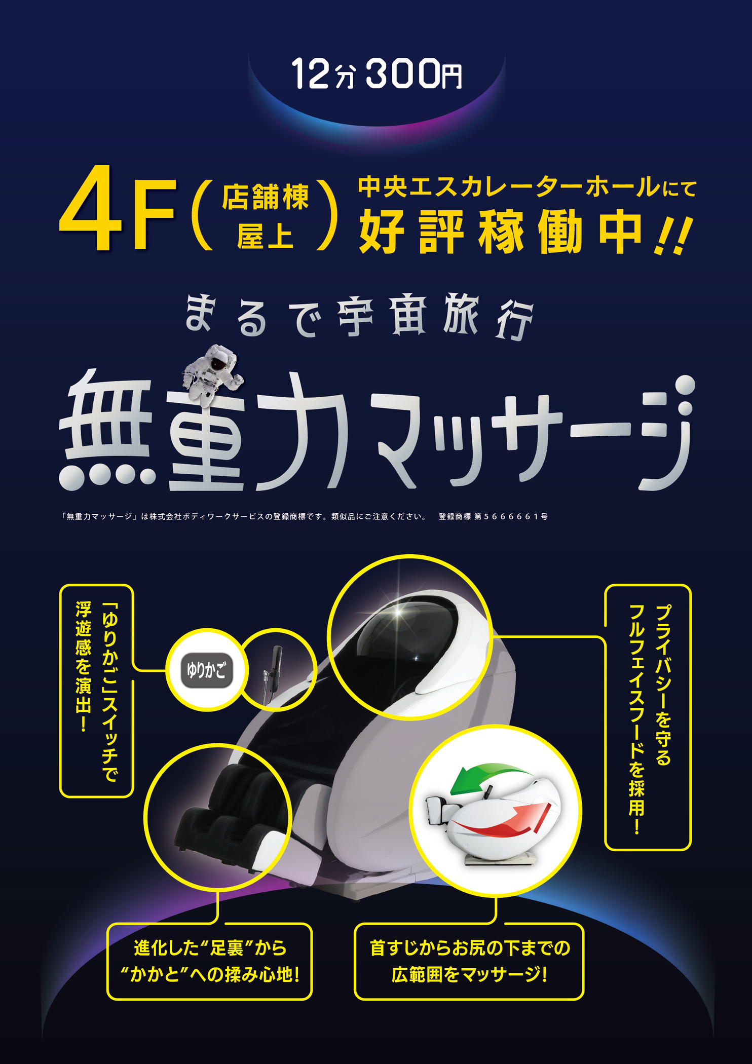 - 按摩椅店铺楼屋顶中央自动扶梯大厅限时设置中!
