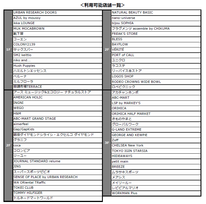 レシート対象店舗は、以下画像よりご確認ください。