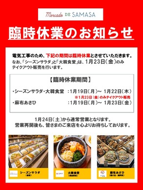 1月19日 (星期一)~1月23日 (星期五)临时停业的通知