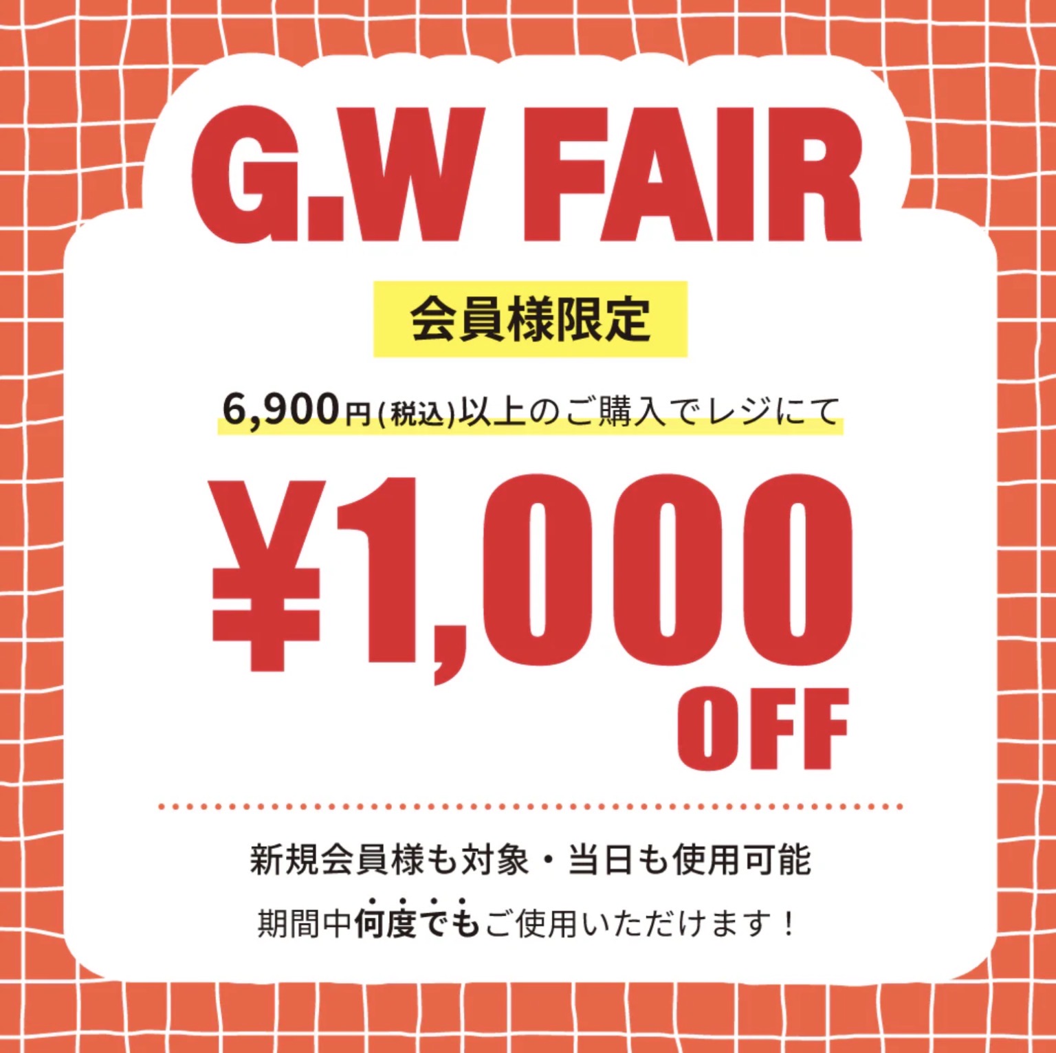 期间,含税购买6,900日元以上,优惠1,000日元的优惠活动正在准备中!