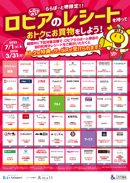 携带您的LOPIA收据即可获得购物超值优惠!活动正在进行中!
