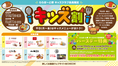 - 此优惠仅面向三井购物公园儿童俱乐部会员。