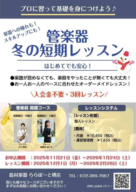 - 【萨克斯长笛】 冬季短期课程开课中!