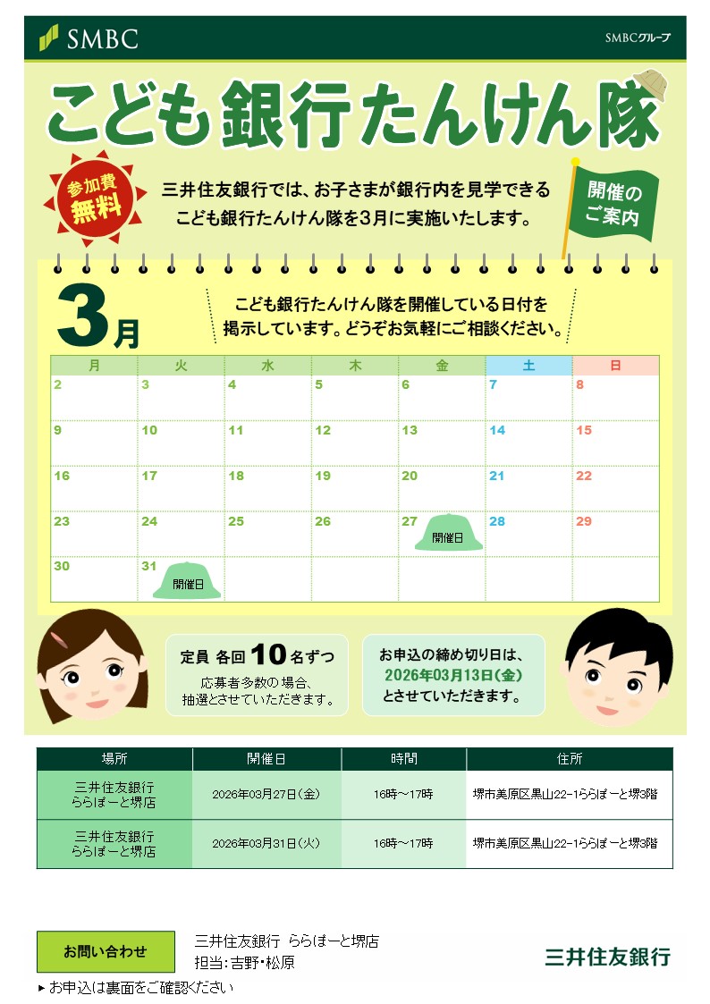 - 祝您春假愉快!【Sumitomo Mitsui Bank儿童银行探索队!活动】