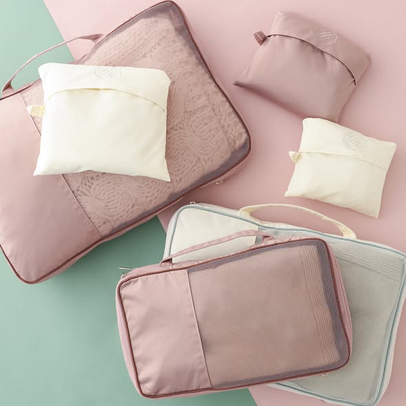 不需要时可小巧收纳,大容量旅行包及手提袋可挂在行李箱上,十分便利。