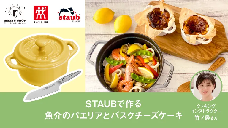 STAUBで作る魚介のパエリアとバスクチーズケーキ