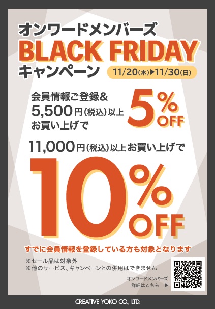 - 人気のアウター10%OFF!11月20日(木)より『BLACK FRIDAY』を開催