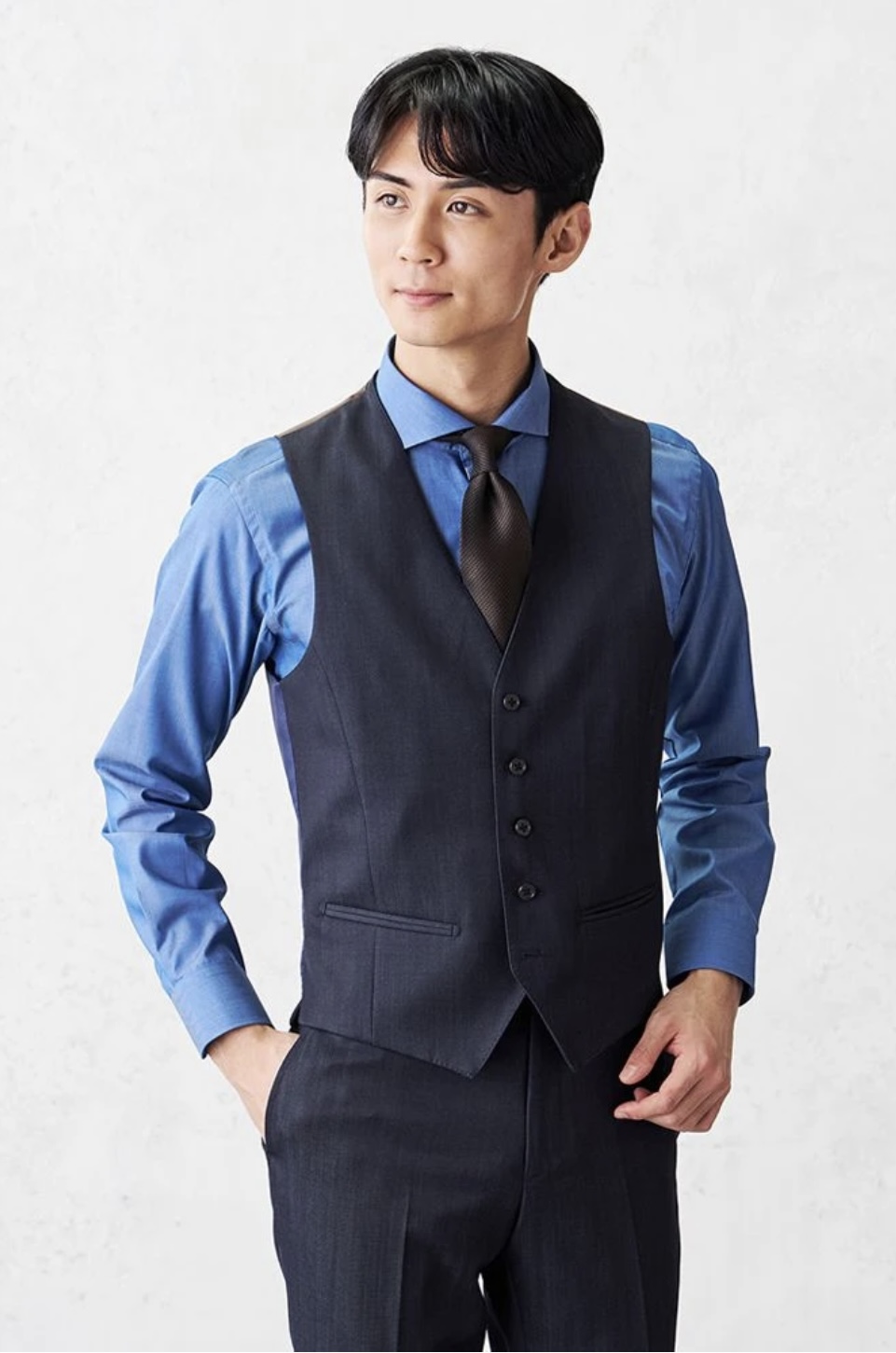 ベストがセットになった3ピース仕様で様々な着こなしが楽しめます。
