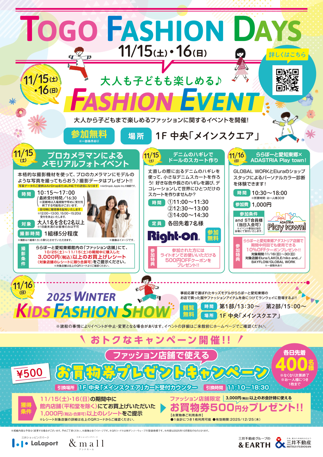 ・参加特典:ライトオンららぽーと愛知東郷店でお使いいただける500円OFFクーポンをプレゼント