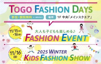 - TOGO FASHION DAYS 【11/15 (周六) ・11/16 (周日) 】