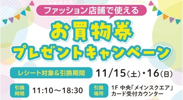 可在时尚店铺使用的购物券赠送活动 【11/15 (周六) ・11/16 (周日) 】