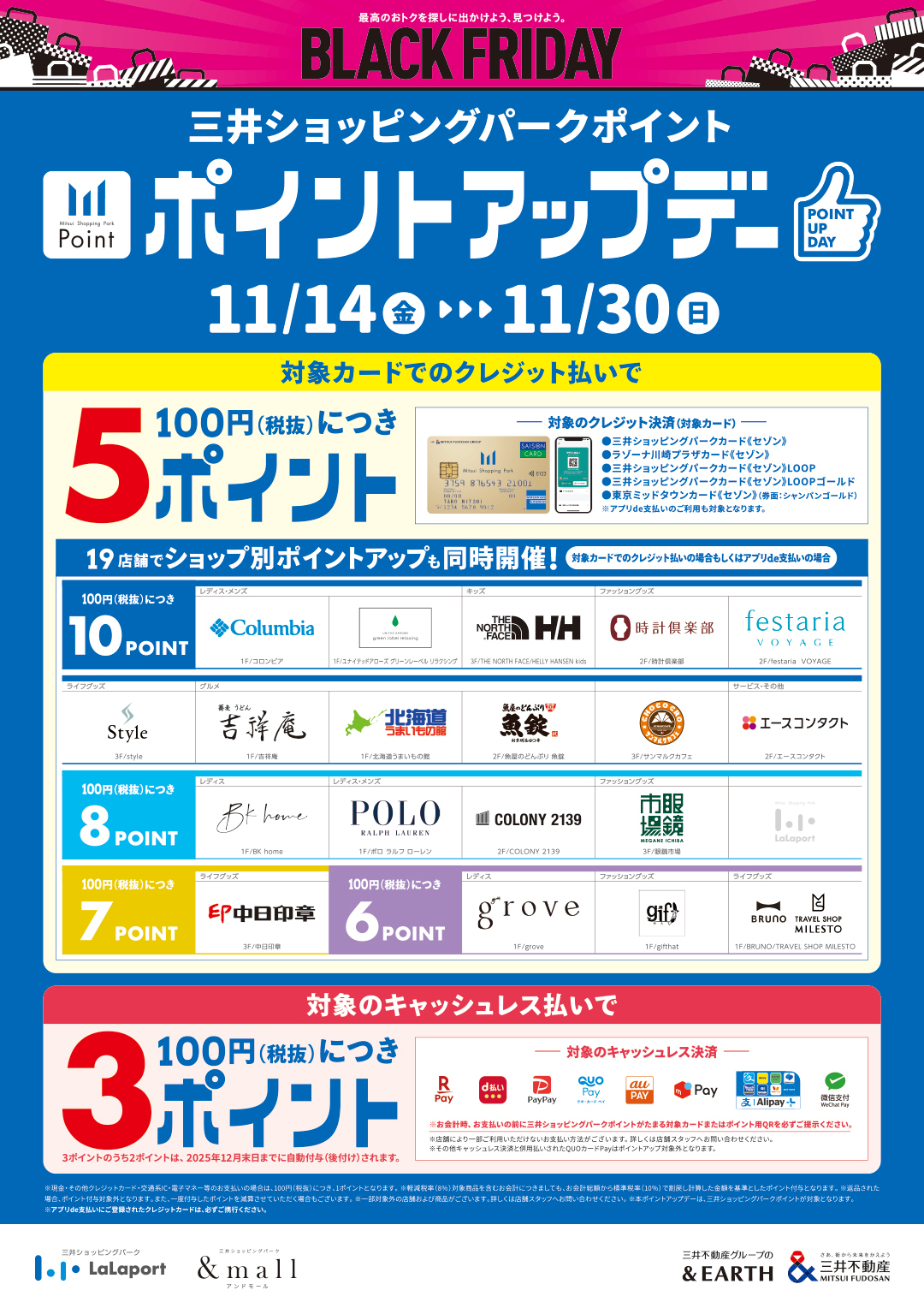 - 11/14 (周五) ~11/30 (周日) 三井购物公园积分日活动开始!