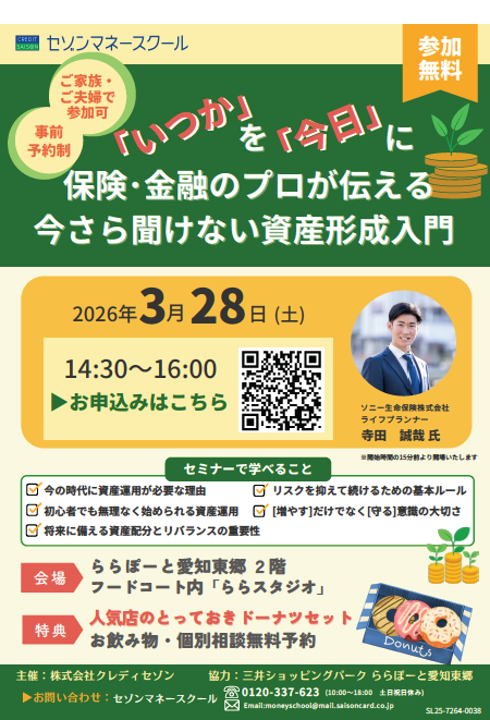 “总有一天”变成“今天”!保险/金融专业人士介绍现在无法听到的资产形成 【3/28 (星期六) 】