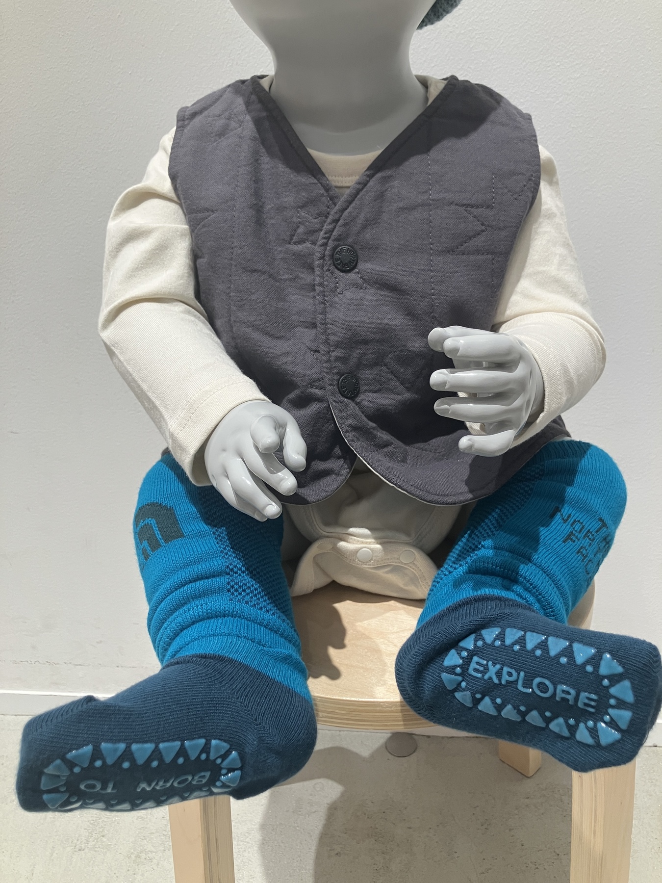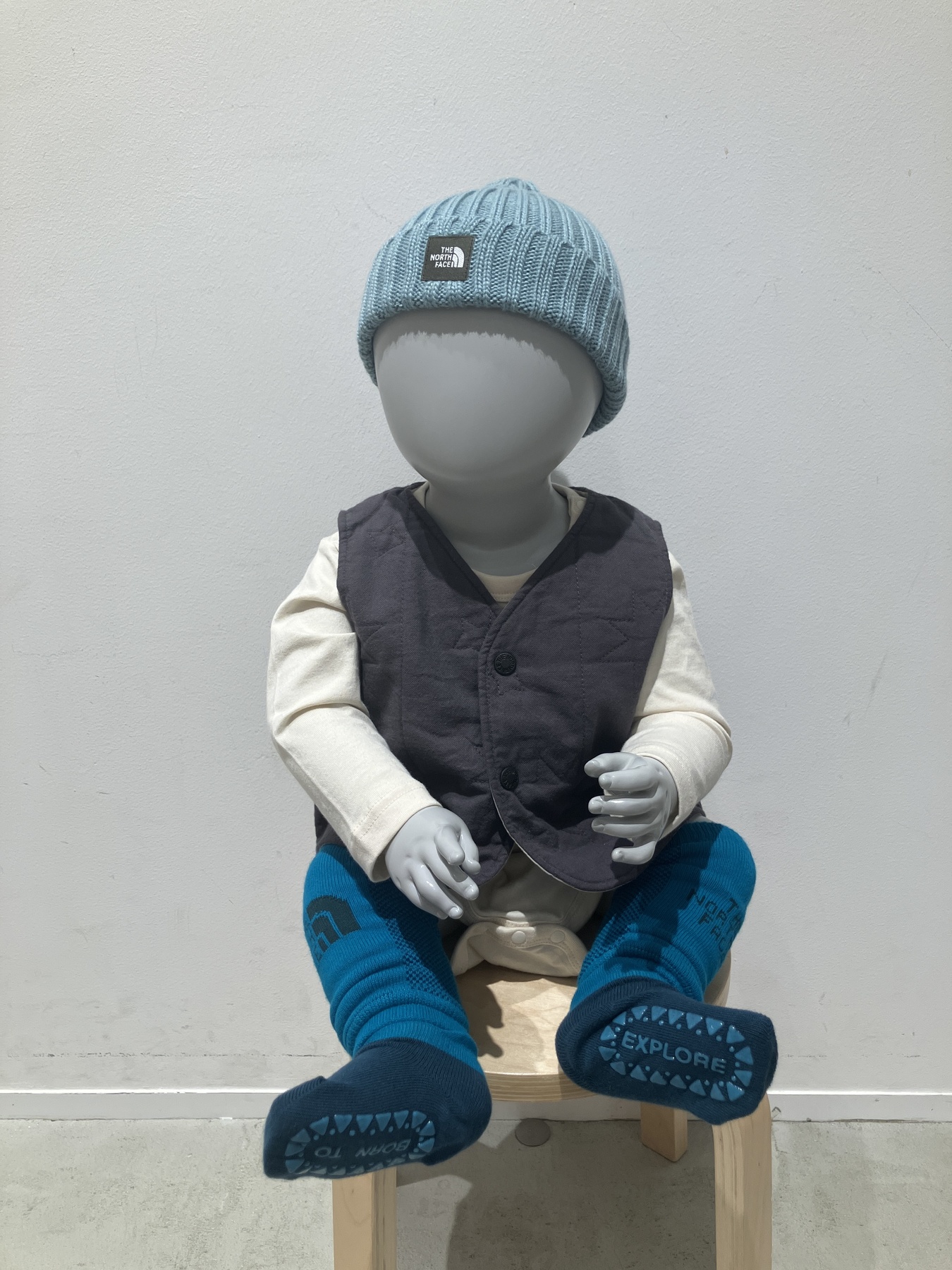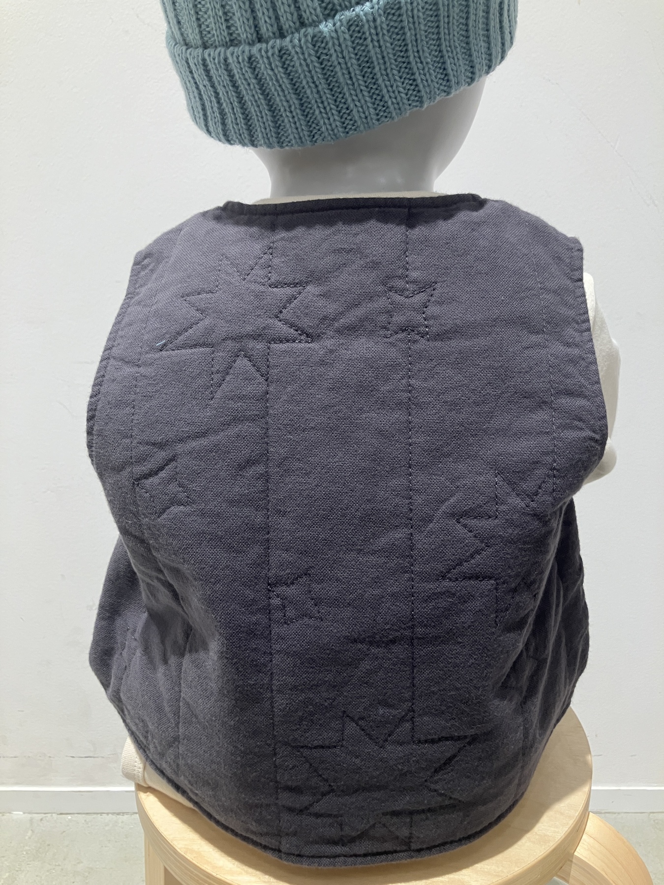 绗缝背心搭配连衫裤,打造出自然的婴儿造型。