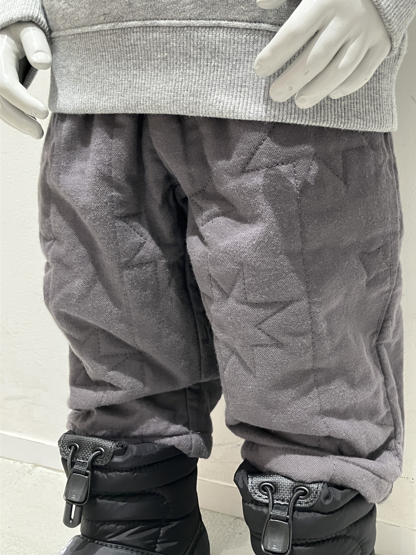 绗缝裤蓬松的silhouette增添了一丝可爱气息。
