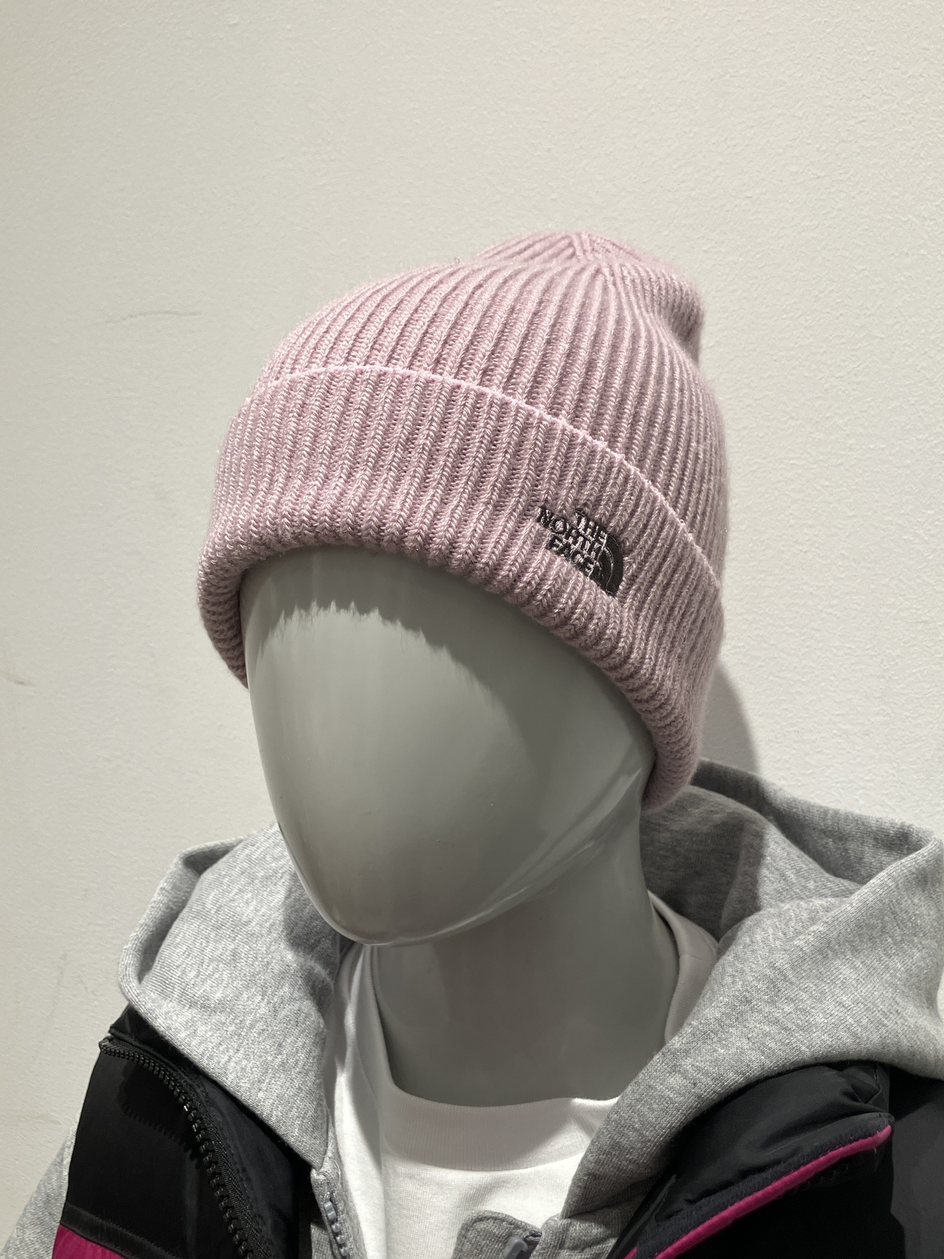 淡いピンクのニット帽とシューズを合わせ可愛らしさもプラス。