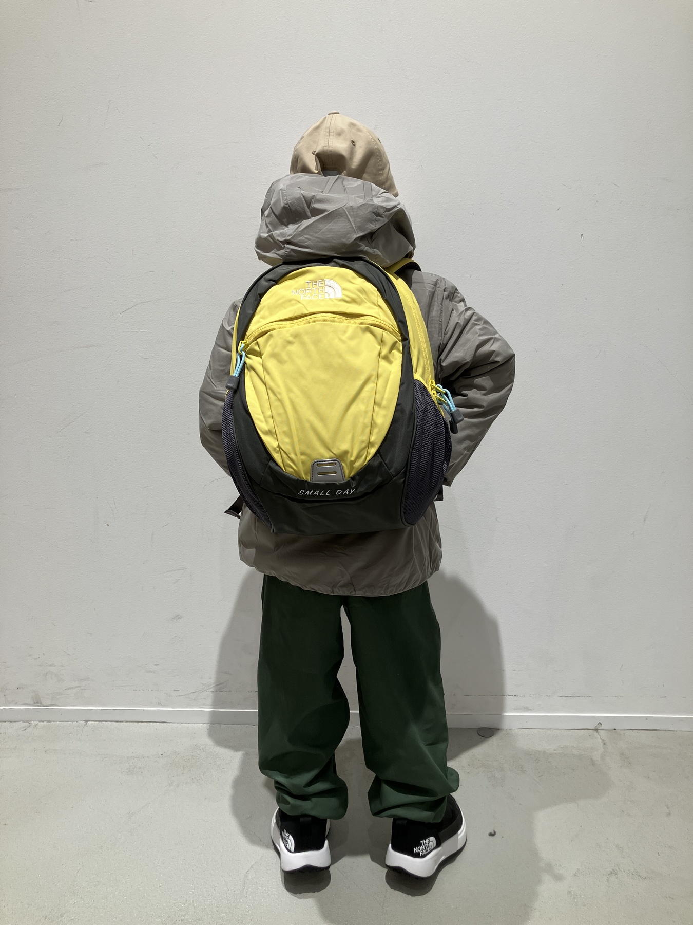 裤子是绿色的,为整套服装增添了别致的户外色彩,使整体造型更加协调。