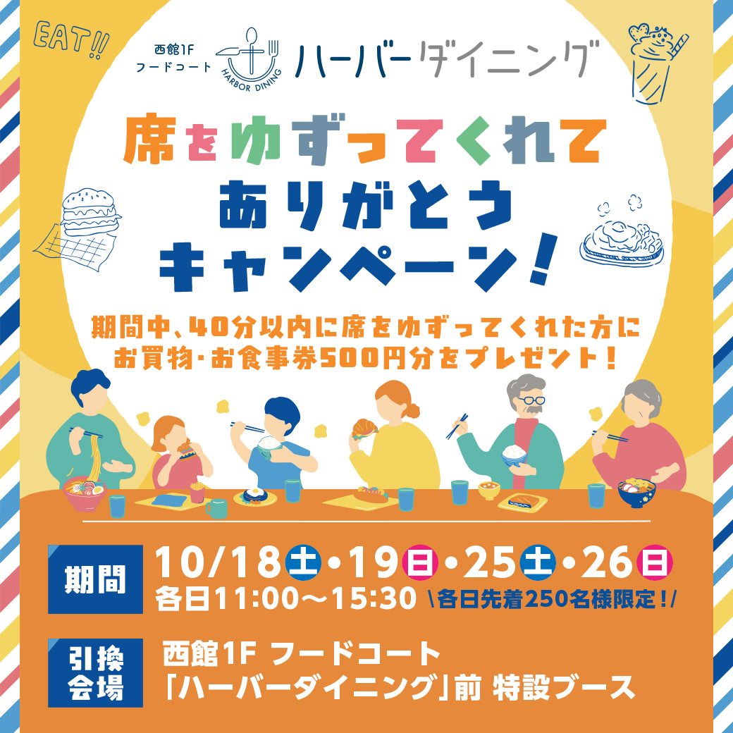3. 每日前250名顾客将获赠价值500日元的Harbor Dining专属购物餐饮券!