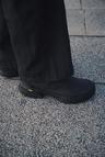 它由染成深黑色的正式材料制成,