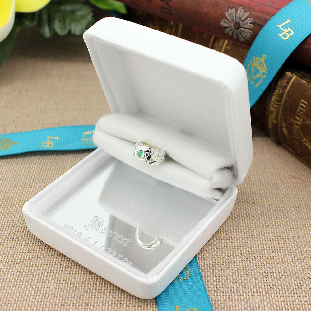 这款夏威夷婴儿戒指以其精美的手工雕刻而脱颖而出。据说,在戒指上镶嵌一颗诞生石可以辟邪、带来幸福。