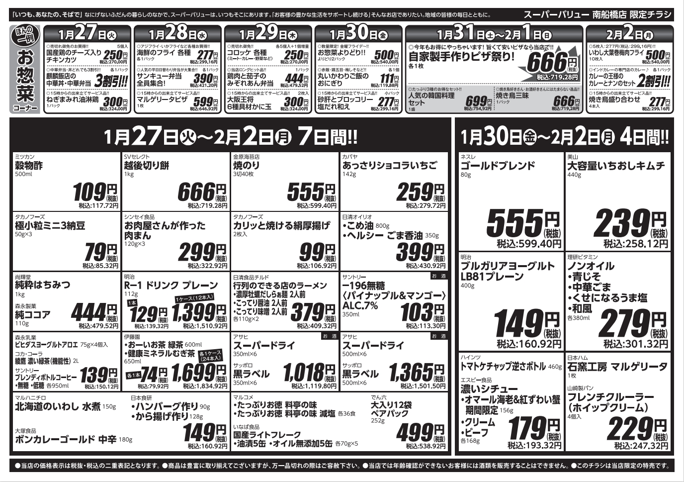 ●家常菜卖场为惠方卷半自助餐1根555日元 (不含税) 合计2根888日元 (不含税) !