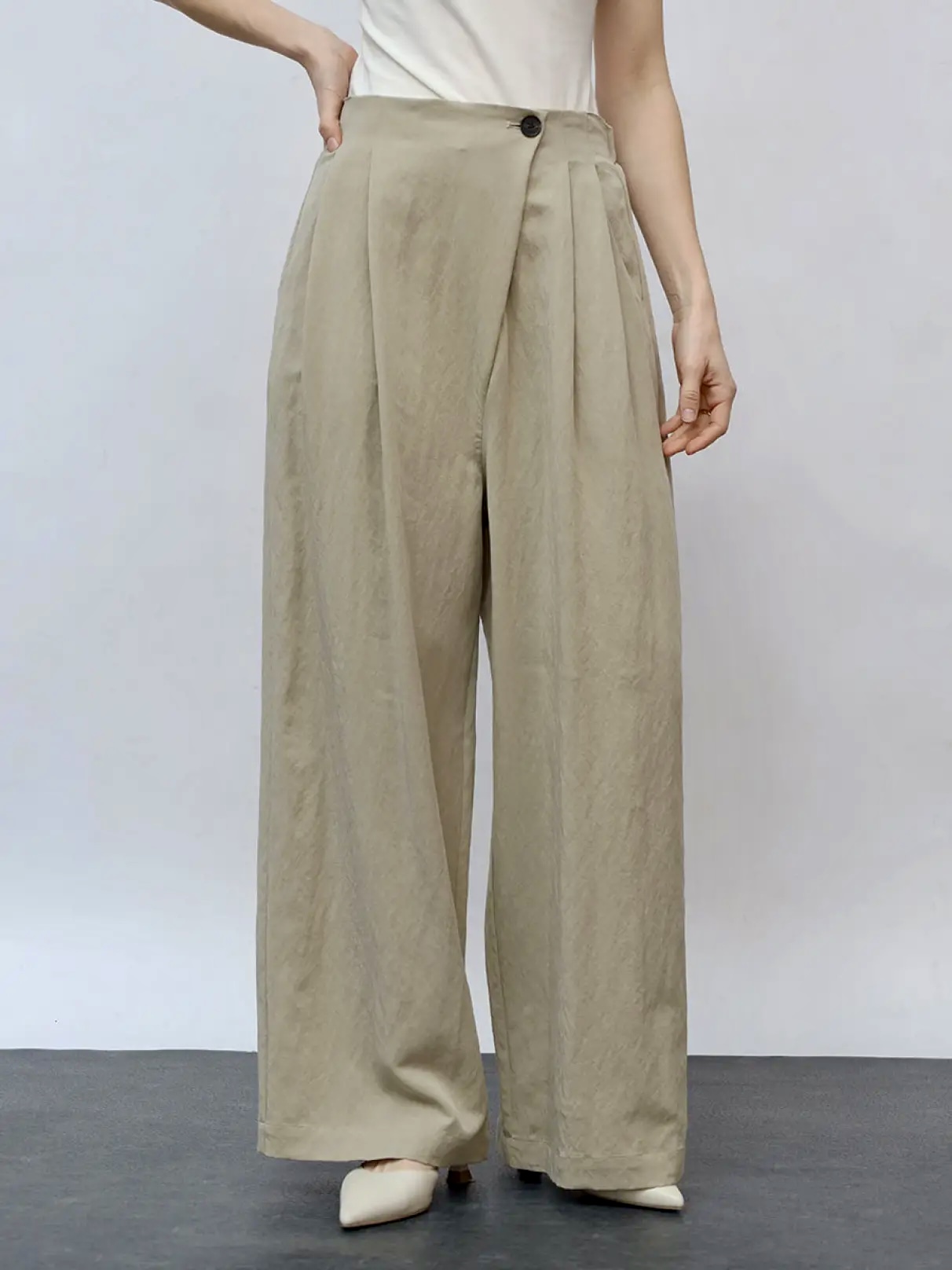 这款裤子的裹身式腰身设计赋予其精致优雅的气质。宽松的silhouette打造出既时尚又休闲的造型,又不失轻松成熟之感。