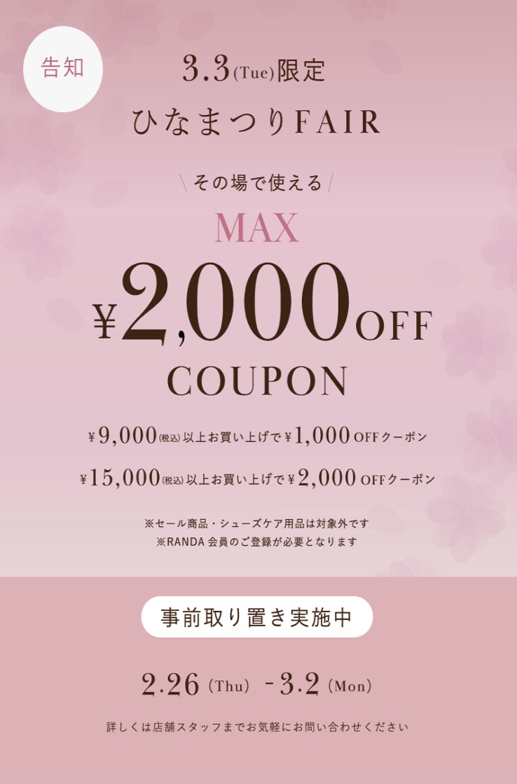 这是一个很棒的促销活动,购买RANDA产品(包括新品)最高可享 2000 日元折扣。