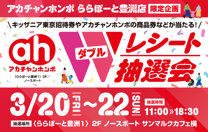 - 【アーバンドック ららぽーと豊洲】アカチャンホンポ Wレシート抽選会 開催!