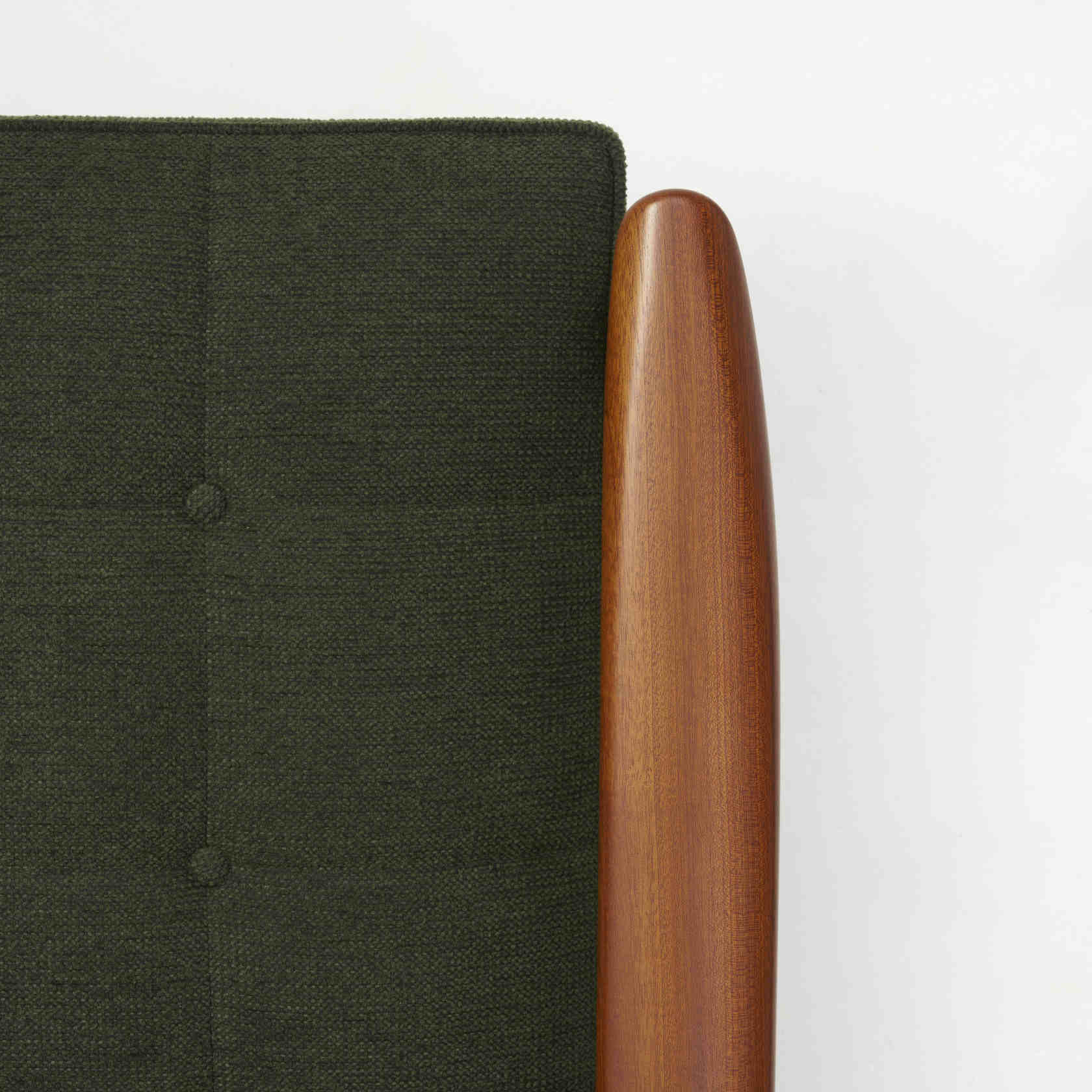 椅面采用深绿色,让人联想到冷杉树,木材则采用沙比利木,这是一种纹理美丽的红褐色珍稀木材。