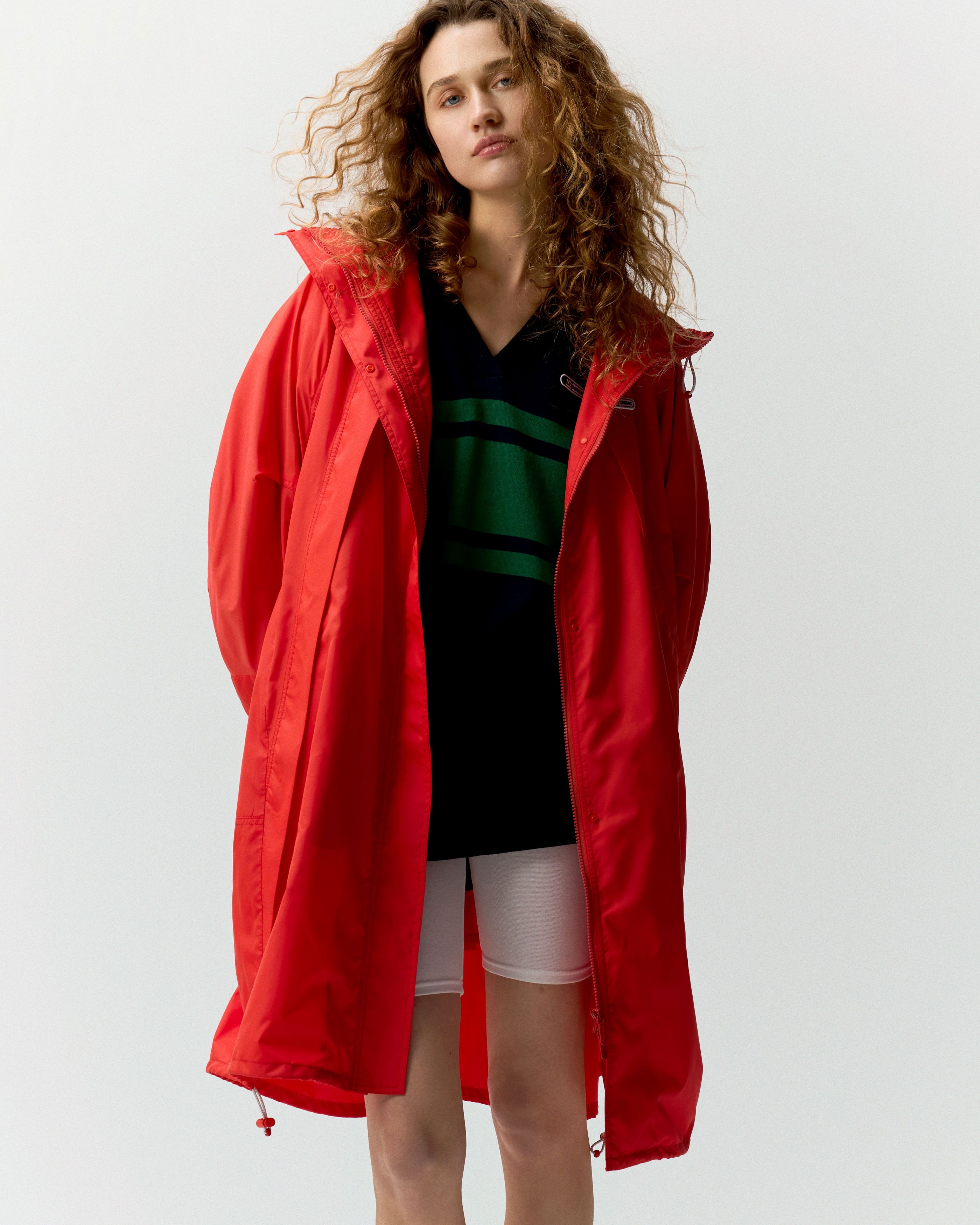 这款外套采用立体茧型设计,时尚百搭。面料轻薄透气,采用记忆塔夫绸面料,兼具恰到好处的挺括度。整体造型简洁现代,又不失正式感。兜帽可收纳于宽大的立领内,打造多种造型选择。