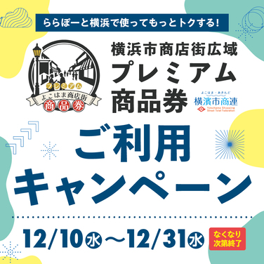 【部分店铺不适用】 可使用横滨市商业街广域高级商品券