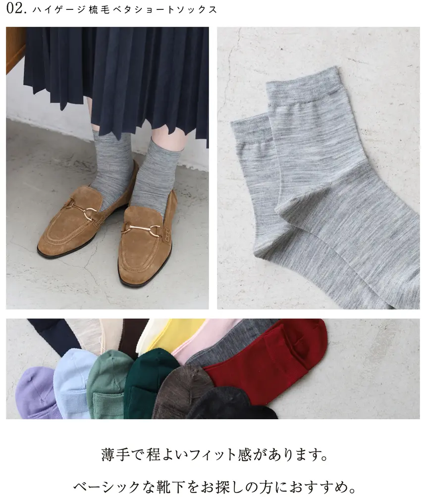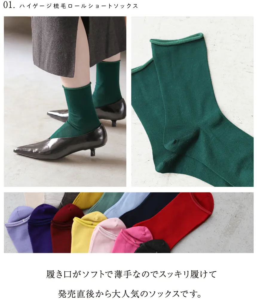 高支精纺卷筒短袜 1,320日元(含税)