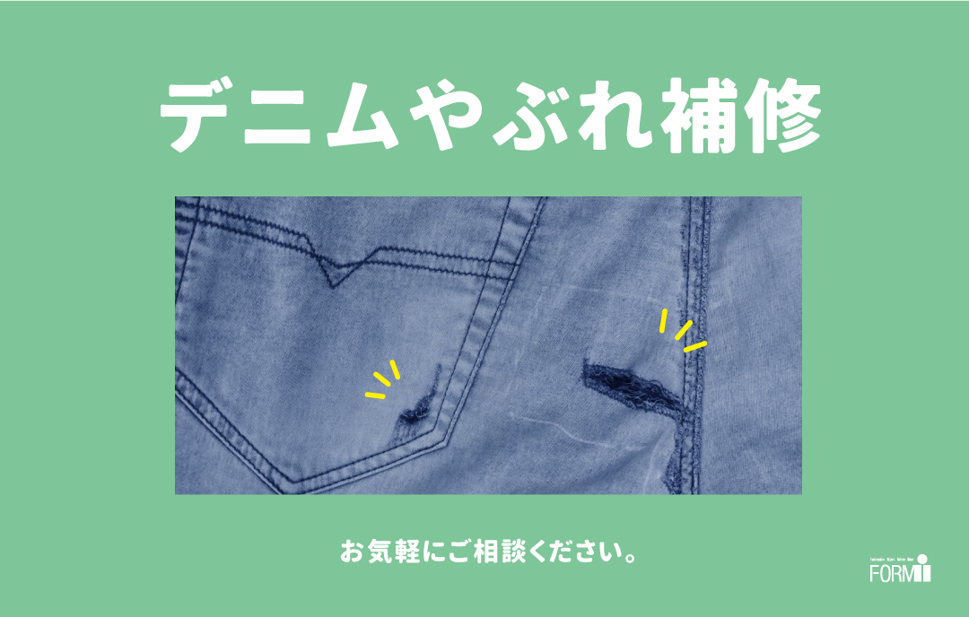 此外,破损牛仔裤的膝盖破损扩大、臀部及大腿内侧的布料变薄的牛仔裤,也请随时咨询修改事宜。