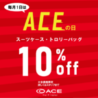 - ACEの日♪スーツケースが10%OFFキャンペーン開催!!