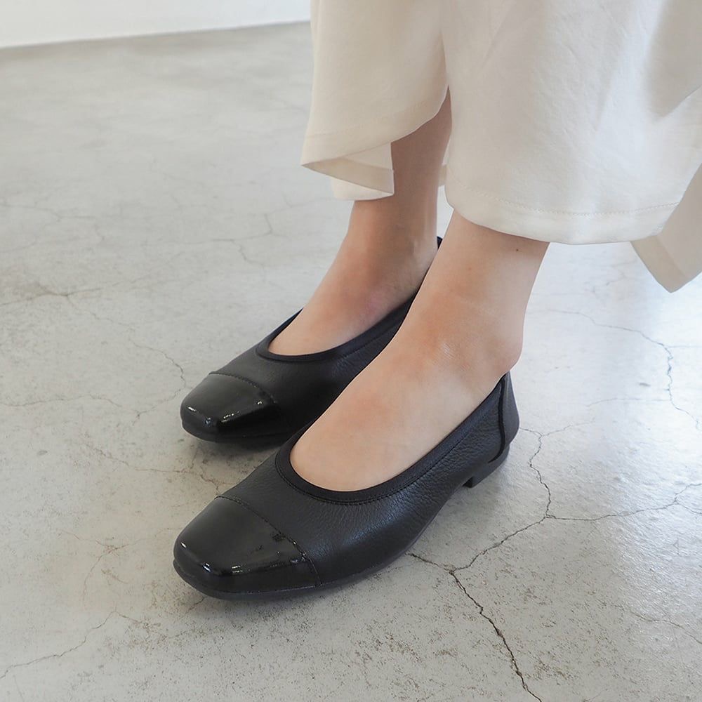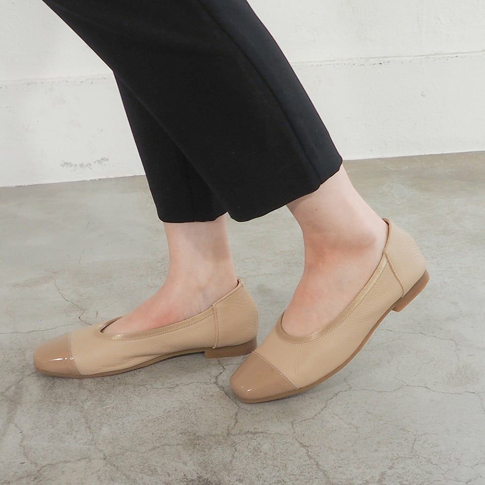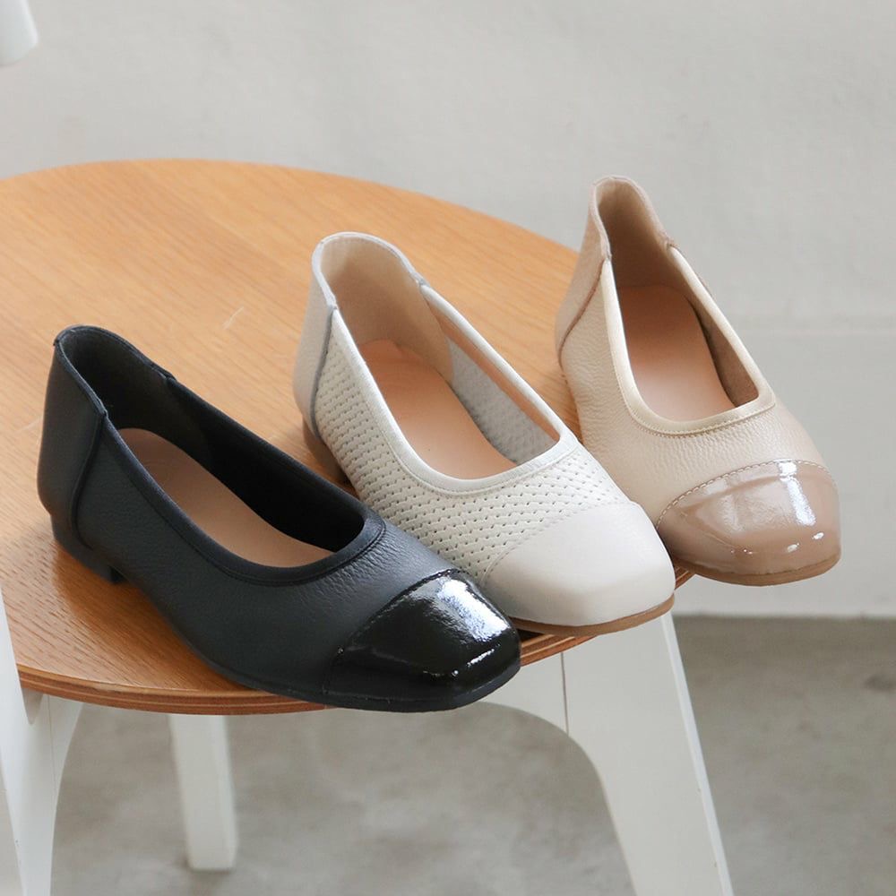 这款芭蕾平底鞋采用简洁的直线设计,鞋头处采用撞色材质,为您的造型增添时尚亮点。光滑皮革与亮面珐琅和轻盈的网状皮革巧妙结合,打造出简约而不失精致的设计。