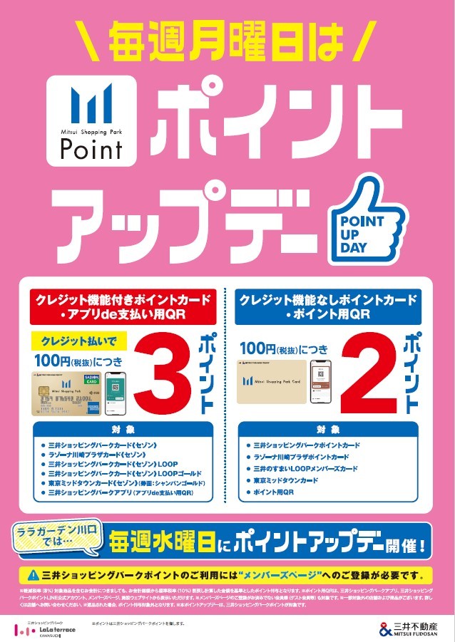 通常每100日元 (不含税) 可获得1积分,周一可获得“2积分”!
