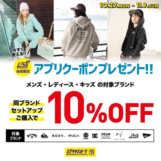 【期间限定优惠券】 上下购买对象组合可优惠10%!! - MURASAKI SPORTS