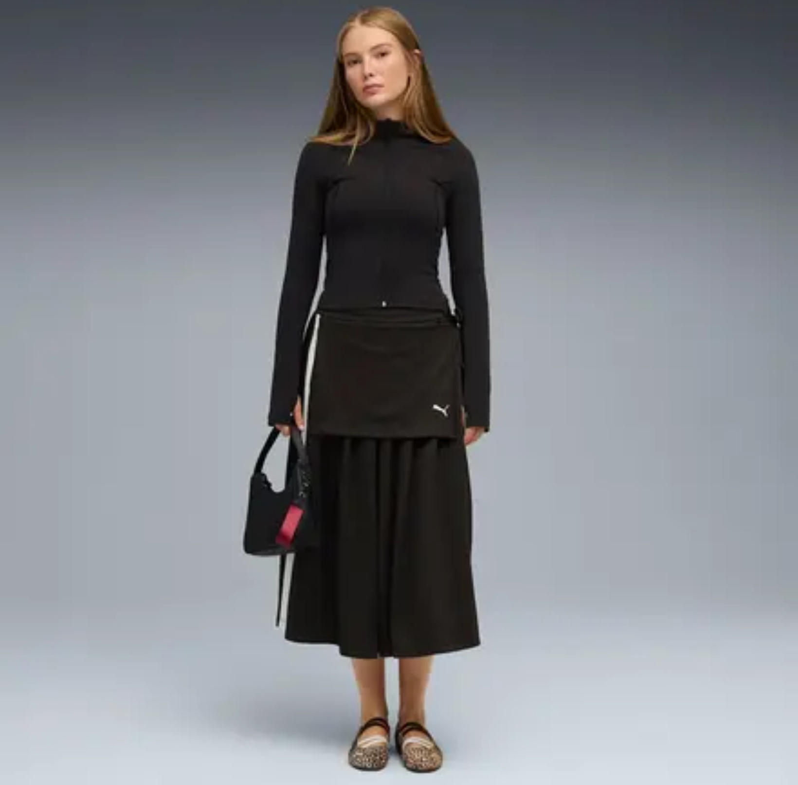这款鞋的鞋面材质采用豹纹马尾设计。这种大胆的材质与图案组合为整体设计增添了强烈的视觉冲击力。鞋底采用经典橡胶材质,使整体造型更加协调。PUMA 巧妙地融合了赛车运动、芭蕾和动物印花等元素,打造出一款独特而现代的鞋款。对于追求独特、潮流前卫风格的时尚达人来说,这是一个极具挑战性的选择。