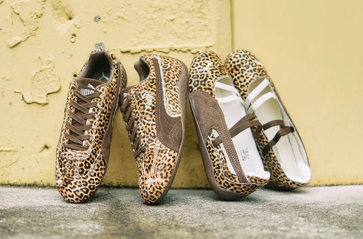 彪马 (Puma) 广受欢迎的 Speedcat 鞋现已推出全新豹纹系列,是引领潮流的必备单品。自 1999 年推出以来,Speedcat 轻松跨越了赛车文化和街头风格的对立面。最初设计为超薄驾驶鞋,旨在为驾驶员提供支撑并将他们的单圈时间缩短哪怕一毫秒,其赛车 DNA 此后因其精致的silhouette而吸引了时尚爱好者的关注,使其成为街头偶像。该系列包括两种款式:Speedcat,马尾辫上饰有大胆的豹纹,以及 Speedcat Ballet Wild,灵感来自经典芭蕾平底鞋。一定要看看这两款 Speedcat 款式,它们融合了赛车传统、芭蕾优雅和鲜艳的豹纹。