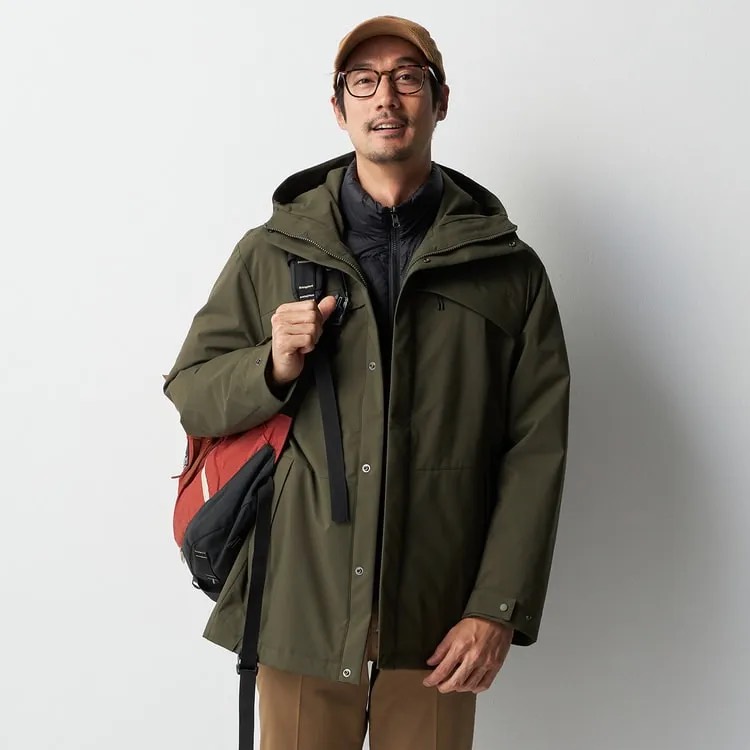 这是一件三穿商务登山派克大衣,工作和休闲场合均可穿着。