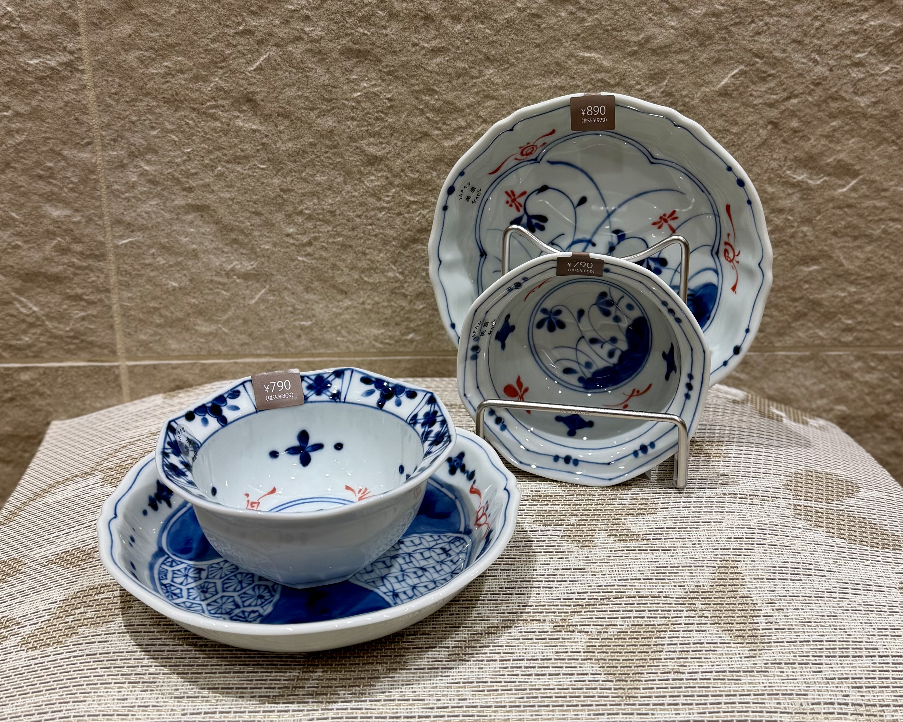 - 藍色と赤色の筆絵柄がポイントの食器♪