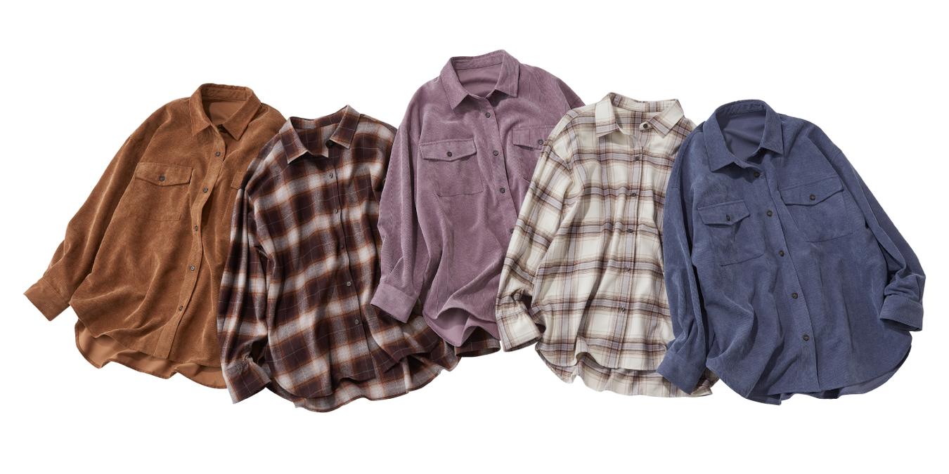 - 易处理灯芯绒衬衫:4,990日元 (含税) 法兰绒格纹衬衫长袖:5,490日元 (含税)