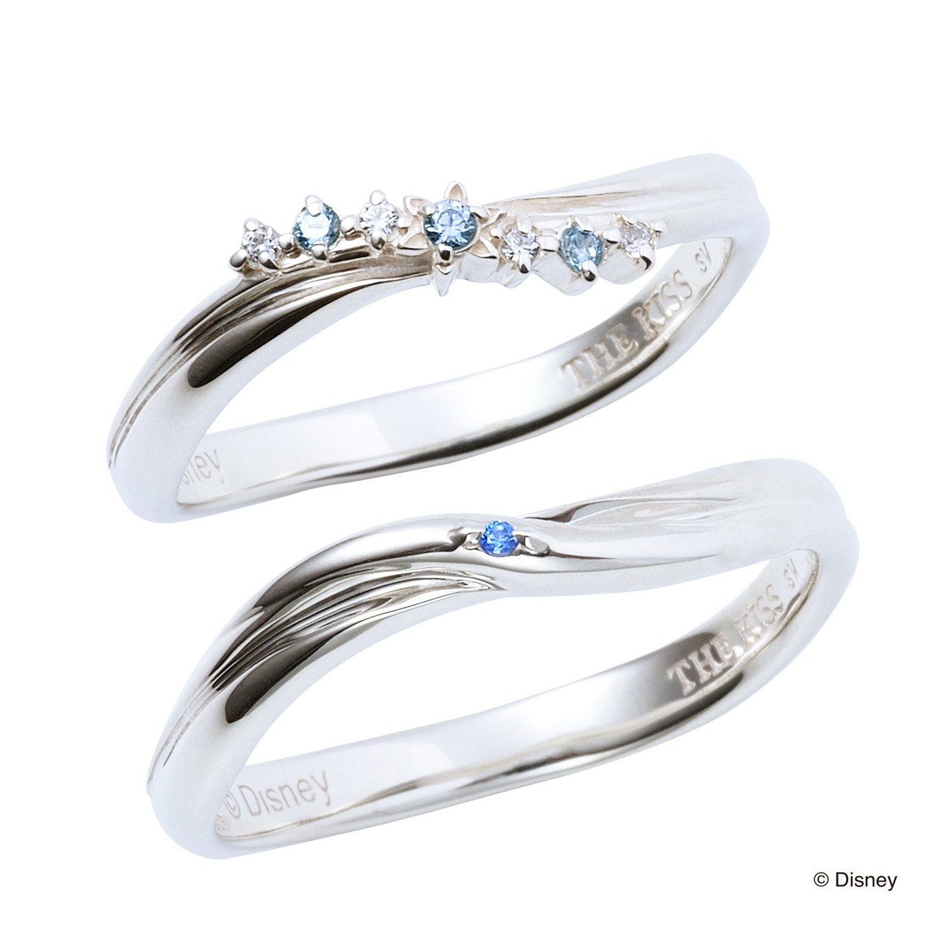 一对以奇幻电影《冰雪奇缘》世界为灵感设计的戒指。