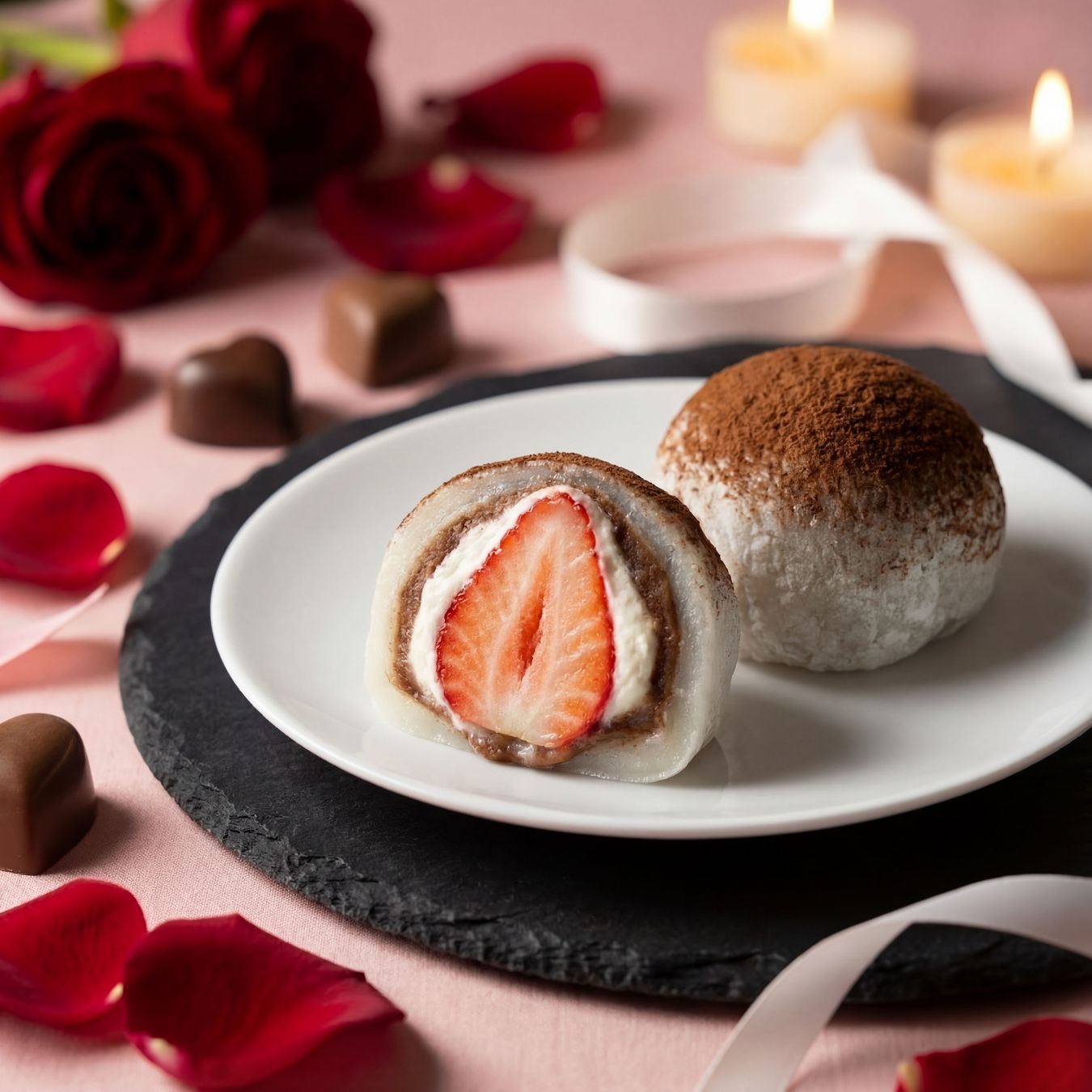 用松软的年糕,包上草莓、马斯卡彭奶酪、咖啡馅料,