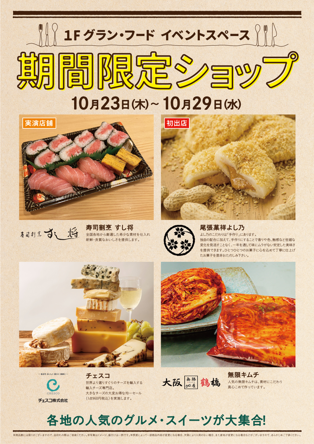 ■开店时间:10/23 (周四) ~10/29 (周三)
