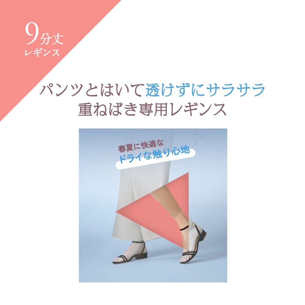 秋冬大受欢迎的衬裤,春夏商品登场。这款优秀的单品可以抑制因出汗而产生的黏腻感、弹性、静电而产生的粘着感。这款护腿裤具有衬裙般的功能性。比衬裙更具贴身感,穿在裤子里面也不会显得臃肿,穿起来很清爽。单穿便能防止内衣走光,穿着浅色下装时令人在意。较长的下装长度可修饰令人在意的小腿,推荐您搭配9分长款式。