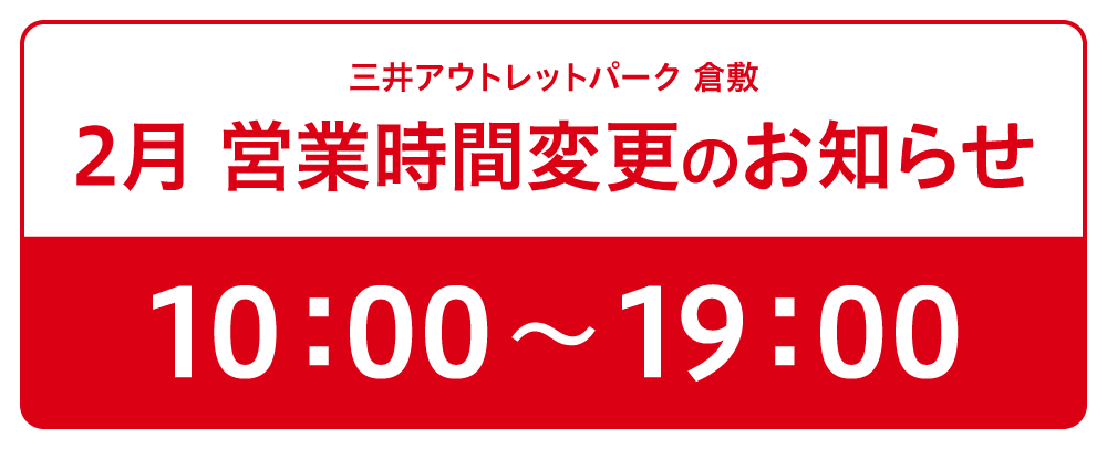 感谢您一直以来仓敷三井奥特莱斯购物城。